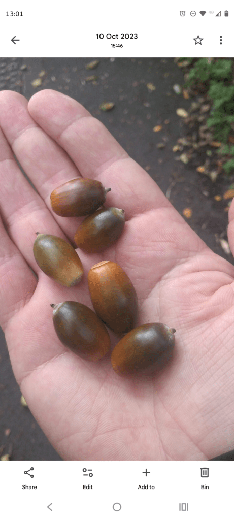 And so I walked back to my flat, with these 5 acorns in my jeans pocket.