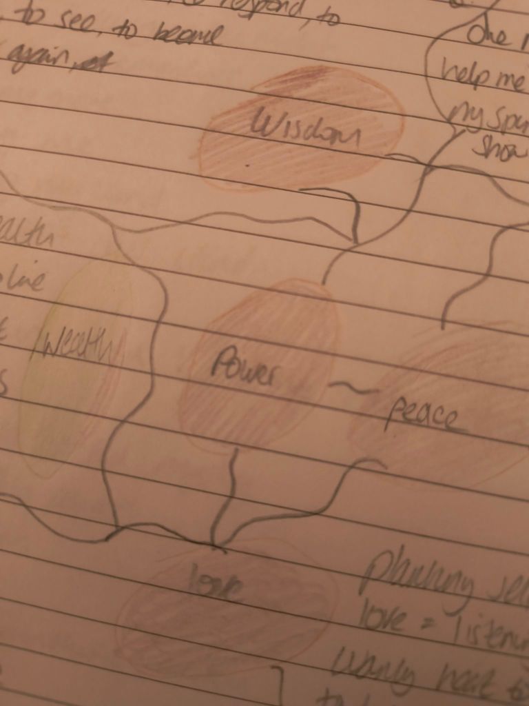 And then I wrote around it. Desires for each. Wants for each. Looking at these today over two years later, quite a profound moment, to realise how much these were aspirational then, gritted determination, and yet now, feel that life is abundant, and peaceful and that I sense power. Real, not aspirational.