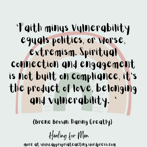 I think, actually, no, I feel and beginning to know, that part of the healing journey I have been on in the last 3-4 years has been emotional, it has also been spiritual, and this has affected how I have interacted with the formative faith of my up to 40 year old self. I would say I have had more spiritual experiences since undergoing therapy than any time before. Through times when I have felt the most broken and confused, damaged and lost and also times when I have recognised my need to love myself – and to sense the spirituality and consciousness within myself. Its a journey that has taken me to Eckhart Tolle, to Karen Armstrong, to Gary Zukav, Irvin Yalom, Paulo Coelho, Richard Rohr, Victor Frankl and Haemin Sunim, and many others, as I continually discover the universe as a spiritual being, and the spiritual being deep inside of me, and spirituality of my body – the feelings and emotions. Holding in balance a spirituality that includes myself, God, creation and the other, and not denying the very heart and soul of myself – for the sake of the other.