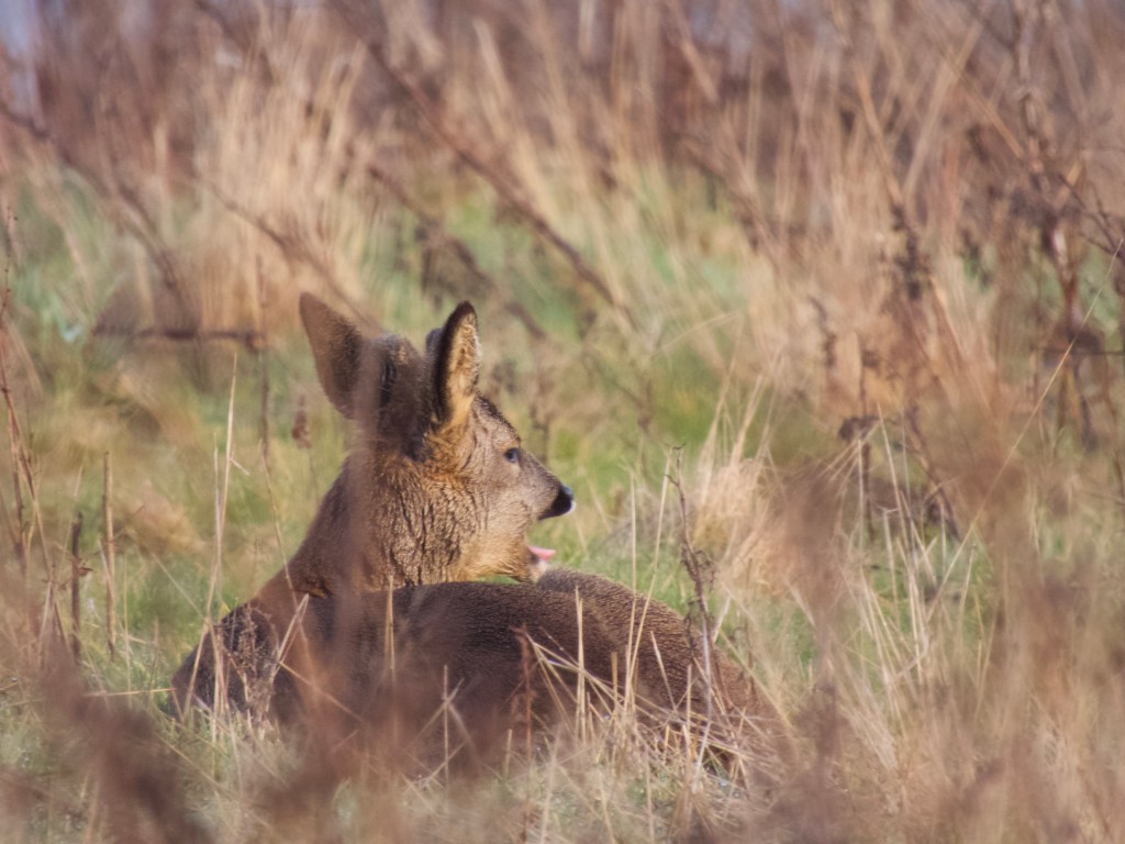 When the Roe deer sat down and rested in the glimpse of the evening sunshine, sat as she was on the wet grass, it was a perfect still wonderful moment. I watched, breathed, and used my camera (quietly) and enjoyed it, present in the moment.