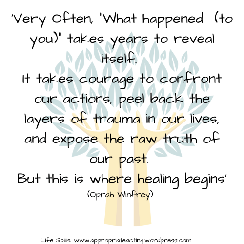 If I’m honest with myself, I kind of knew that the process of recovering from the childhood experiences, the abusiveness of my principle care giver (to give a more technical term), it was going to take significant time. It’ll be one reason why it took me having to hit rock bottom, and also have safe emotional space to start to deal with it.