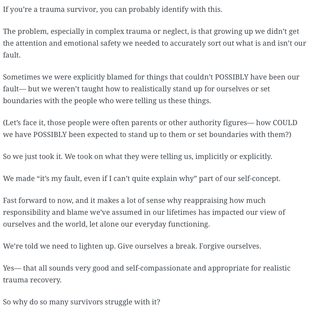 Self love is risky because i grew up with an understanding of responsibility and fault. I believed I was to blame, and I took on responsibility, because I was projected on as being spoilt, selfish, too clever, messy, not there enough for that person, not fulfilling her needs, not able to ‘fix’ the family.