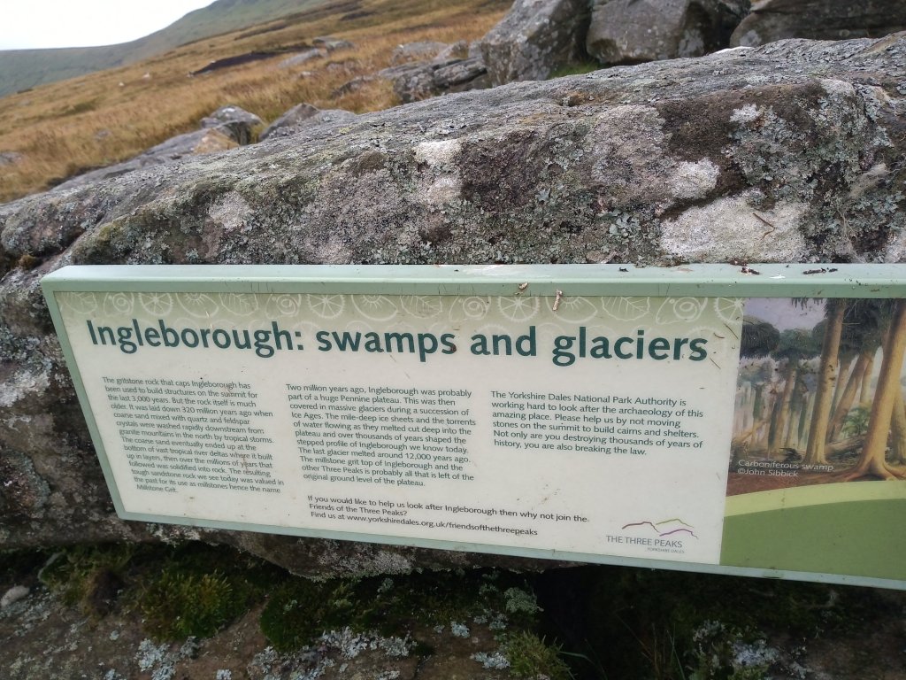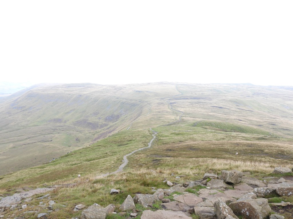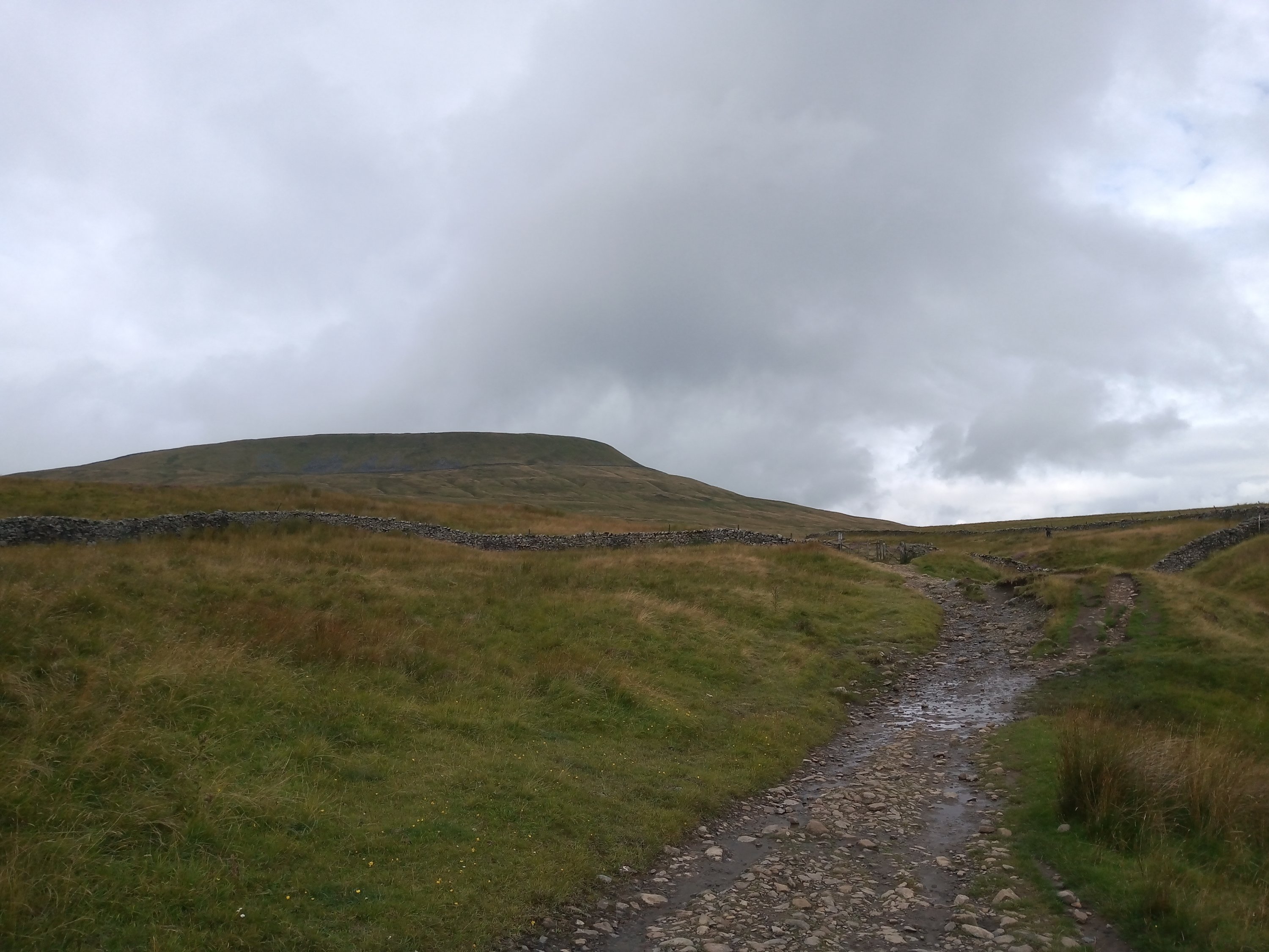 Not a peak, but a large platform, a flat space, with views of other distant heights, Pen-y-ghent peeking in the clouds and others far off.