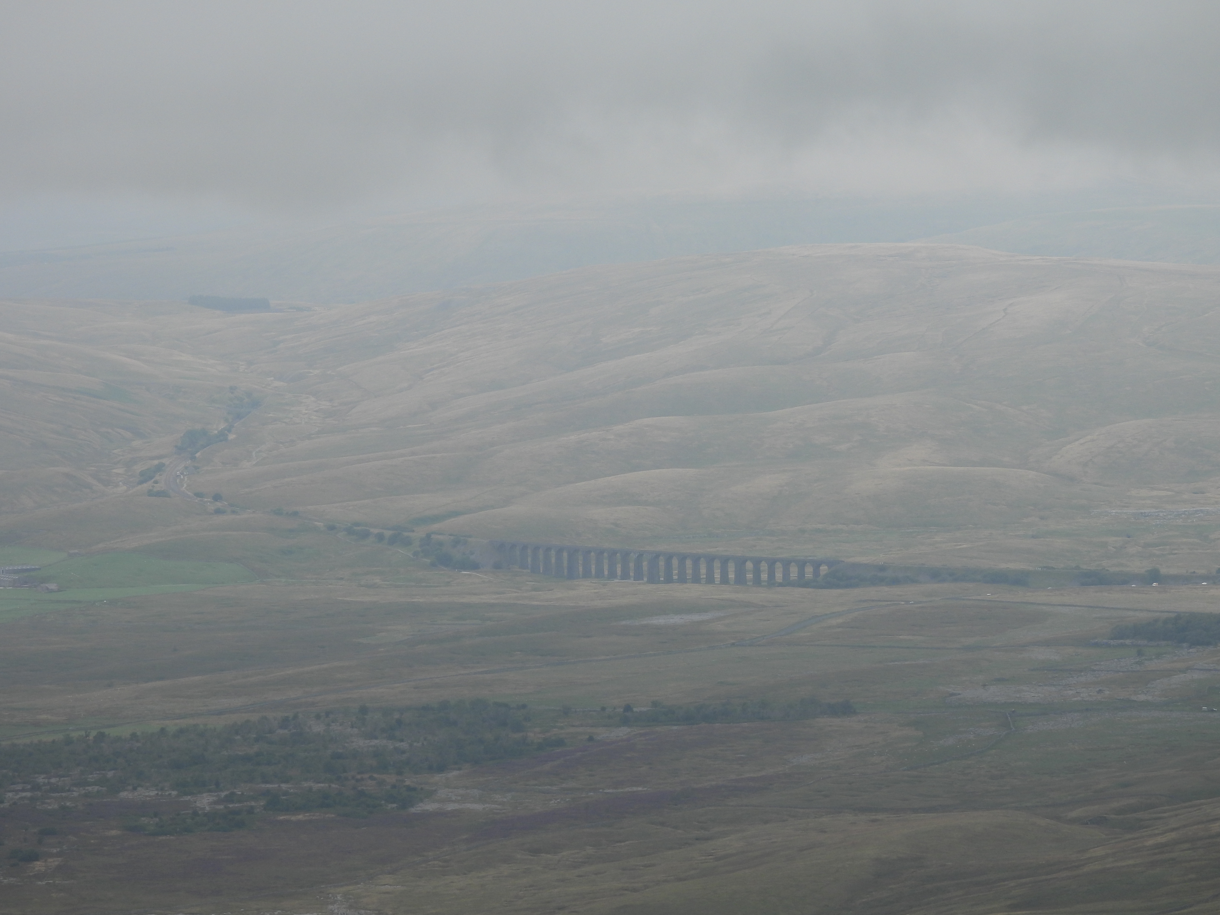 Ribblehead Valley, and the glorious Ribblehead Viaduct. Until now hidden by the mountain itself. And still hidden by the clouds, which I’m now almost in.